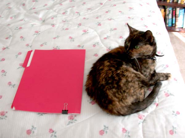Kiki next to a folder,