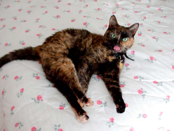the camera, she decided to stretch and lick her nose all glamorously!